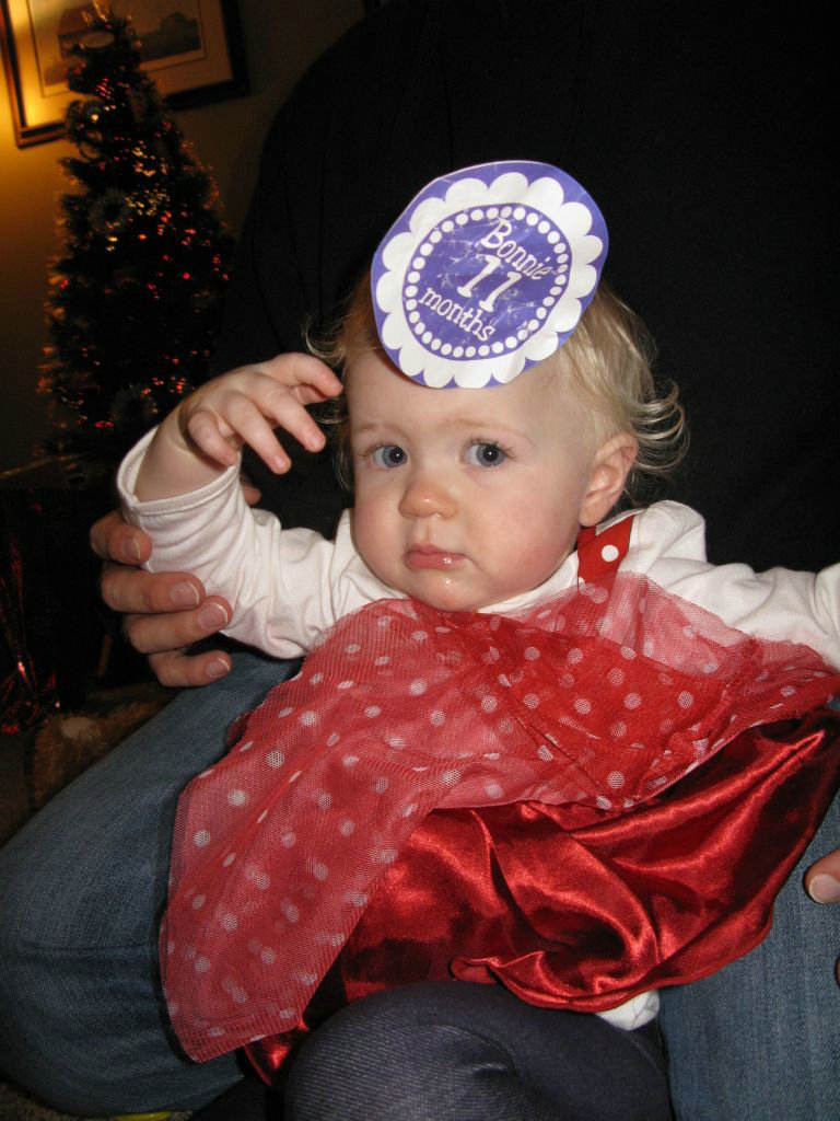 Speaking of Bonnie, she's so sweet with Caroline. We have her give the baby kisses before bedtime and she loves to do that before any of us get kisses. She always tries to give Caroline blankets and paci's even if she doesn't need them. Like any 1.5 year old she doesn't know her own strength so she'll sometimes pat her too hard or try to touch her eye to say "eye" but she does love her. She says "baby" a lot, and if you say Caroline she'll point to her. Yesterday Caroline was in the bouncy seat and Bonnie was dancing around in front of her. Caroline was smiling and cooing at her sister and it was the cutest thing!